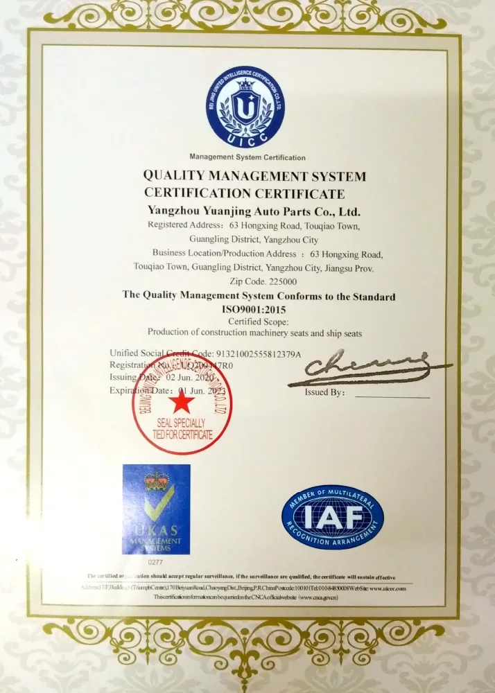 ООО Янчжоу Юаньцзин Автомобильные Комплектующие расположена в живописном и исторически значимом культурном городе Янчжоу. Основные члены ее команды являются выходцами из известных предприятий, что позволяет компании использовать передовые предпринимательские концепции и обширный профессиональный опыт. Компания специализируется на исследованиях, разработке, проектировании, производстве и продаже систем сидений и сопутствующих компонентов для офисной мебели, автомобилей, судов и строительной техники, а также предоставляет комплексные решения в области систем сидений. Одновременно, благодаря исключительному качеству своей продукции, компания поставляет сиденья для военных бронетранспортеров, мобильных медицинских пунктов, наземных станций беспилотных летательных аппаратов, командных машин, машин связи и внедорожников.